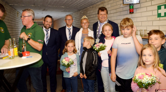 Beim Schießen auf die Königswürde an der Red Dot Anlage (Lasergewehr) aus Bricht, beteiligten sich 31 Jungen und Mädchen zwischen sechs und 13 Jahren. Insgesamt 21 von Ihnen kamen ins erste Stechen, dabei blieben Moritz Nuycken, Mattes Görs und Leon van Hüth über. Leon überzeugte beim darauffolgenden Stechen einer zehn und freute sich wie Bolle, genauso wie die Königin Greta Jäger. Im letzten Jahr hatte Leon es das erste mal versucht die Königskette zu erlangen und hatte diesmal dann auch das nötige Quentchen Glück.