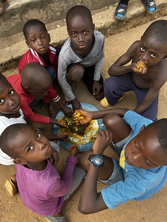 Die Kinder aus der Nachbarschaft freuen sich wenn sie etwas Essen erhalten