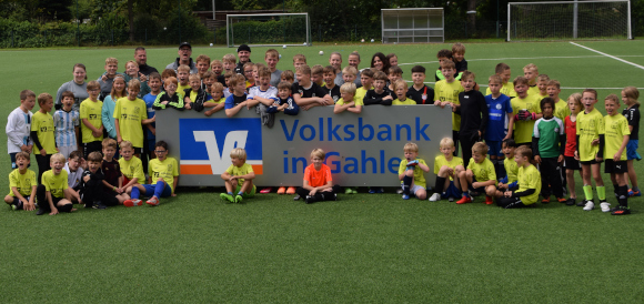 6.8.2023 Gahlen (geg). Das "Fußballcamp" des TuS Gahlen erfreut sich in den Sommerferien immer wieder großer Beliebtheit. 63 Kinder aus Gahlen, dem Dorf, Dorsten oder der Hardt tummelten sich in der letzten Ferienwoche auf den Fussballfeldern, um unter anderem in vielen Spielen das „Runde ins Eckige" zu befördern. Einige Kinder hatten Erfahrung im Fußballspiel, andere kamen aus Spaß am Ball spielen. Wobei interessierte Jungen und Mädchen in diesem Jahr am Donnerstag auch das Tennisspielen ausprobieren konnten. Denn „Hier fehlt uns der Nachwuchs“, so Conny Eckhold, Frontfrau des TuS Gahlen.